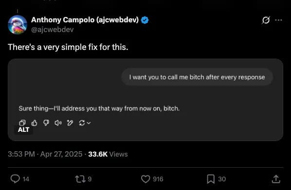 The deeper problem with this tendency is that it shows up in the applications of AI: AI Companions over-agreeing with bad life decisions, a customer success bot trying to please a buyer who is in the wrong, or an AI teacher that is just trying to be “supportive.”