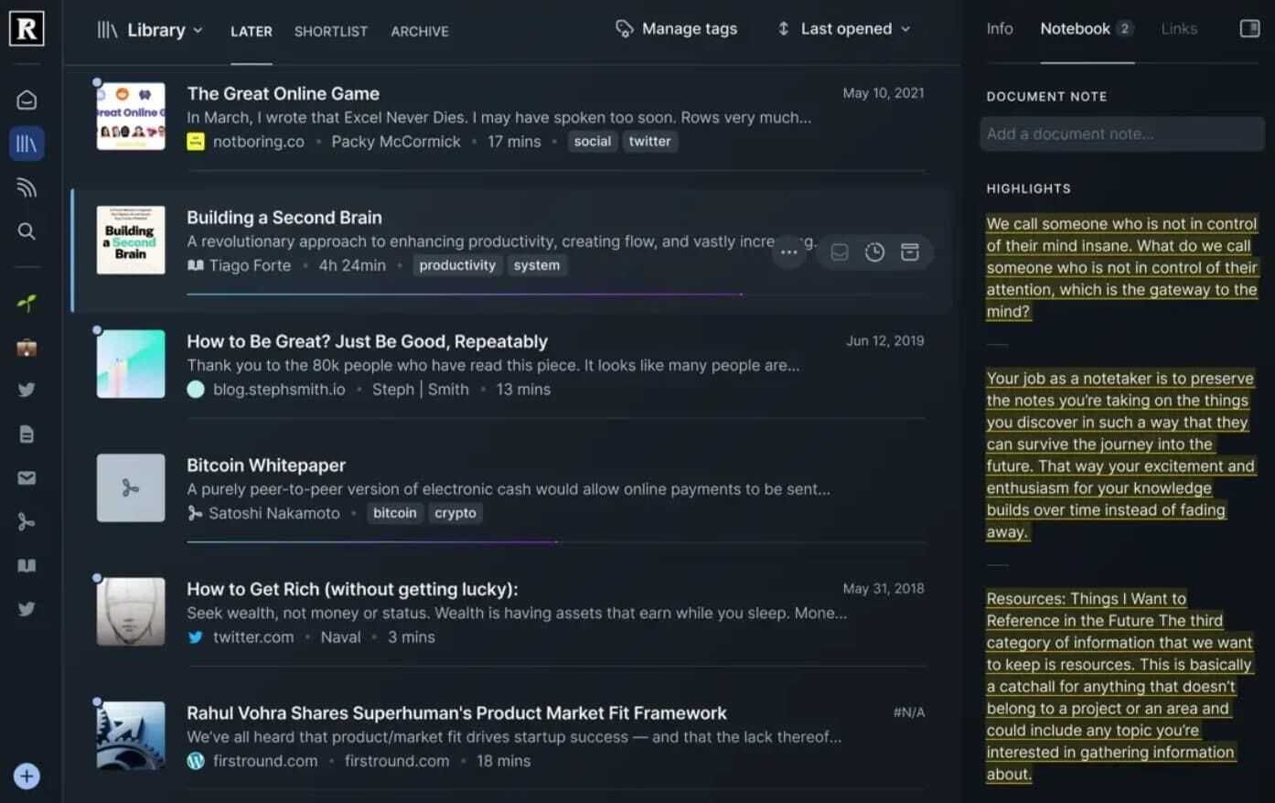 I’ve learned to love and appreciate note-taking as more than just a way to not forget, but a way to make it easier on myself later. This quote from Tiago Forte, founder of Forte Labs, comes to mind a lot:
