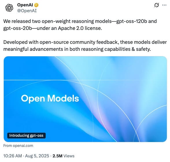 OpenAI has just gift-wrapped two new “do-it-yourself” AIs for the public: a big one and a smaller one, both free to download, tweak, and use however you like.