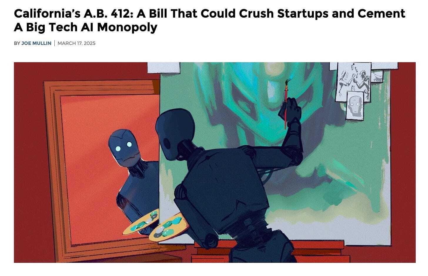 For example, California’s AB 412 would force developers to keep a public portal of every known copyrighted work in their corpus.