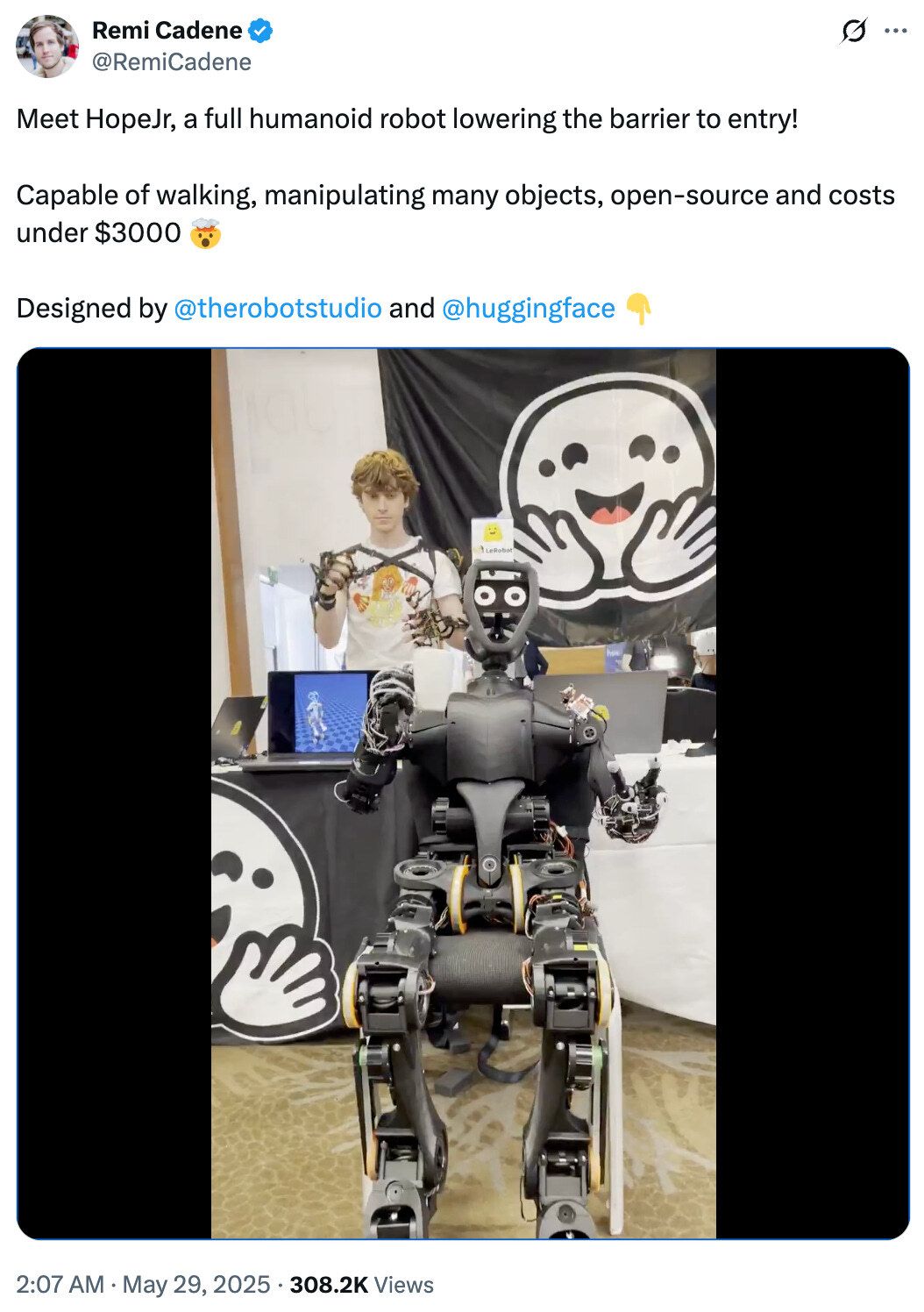 $3K humanoids hit the cart: Hugging Face and The Robot Studio introduced HopeJr, an open-source bipedal robot that walks, grasps, and ships later this year for under $3,000 — cheaper than most iPhones. Consumer-grade robotics just crossed a psychological price ceiling, opening the door to hobbyist-scale automation.