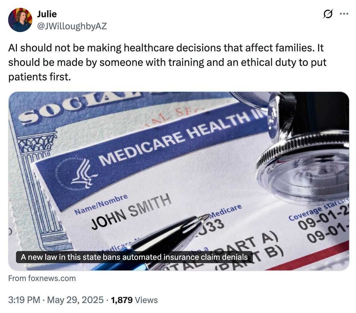 And when it comes to healthcare, many states have already barred insurers and hospitals from letting AI make final coverage or treatment calls. Arizona lawmakers got a bill along those lines signed into law this year.