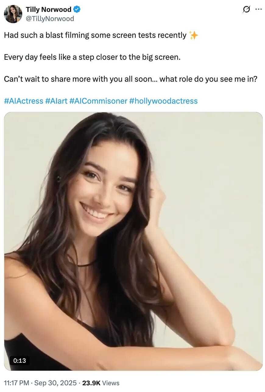 Now there’s an AI-generated “actress” making videos, talking to fans on “her” social media accounts, and generally freaking out all the real actresses and actors in Hollywood.
