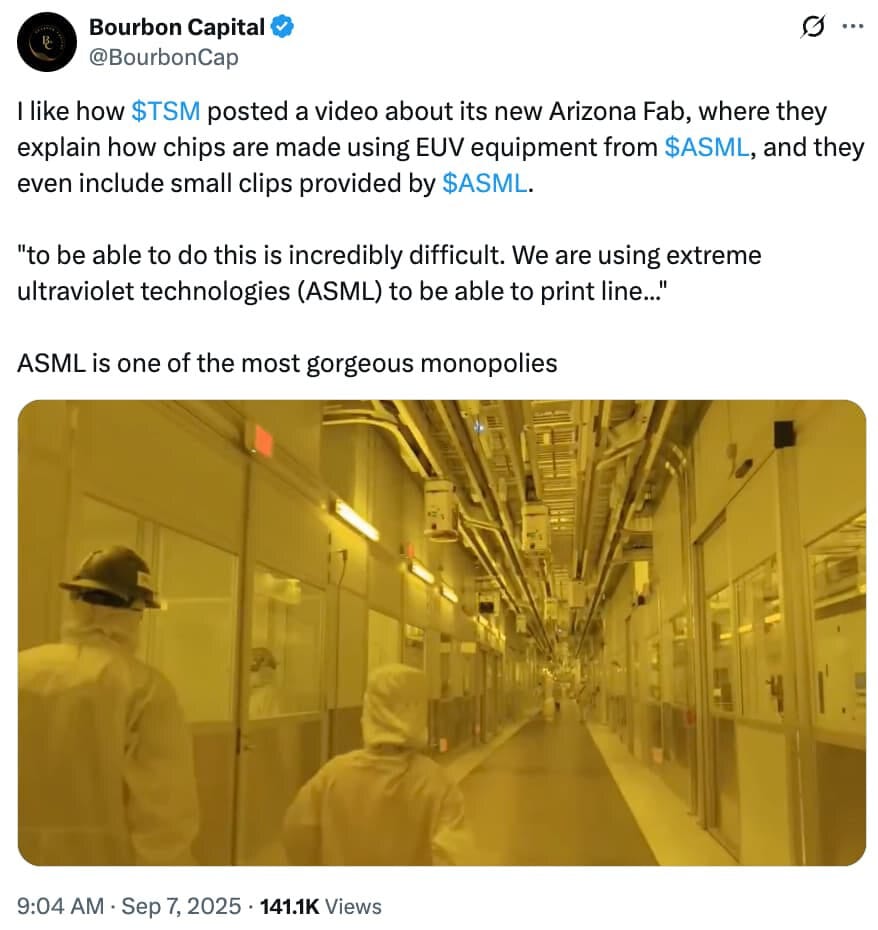 Silicon show-and-tell: TSMC dropped a rare fly-through video of its Fab 21 Arizona facility near Phoenix, showcasing the “Silver Highway” automated rail system and dozens of ASML Twinscan NXE EUV lithography machines in full operation.