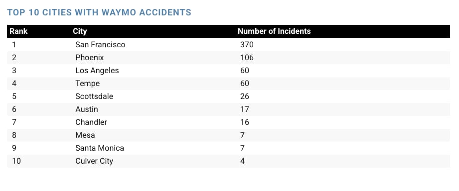 As of March, there had been 137 incidents that involved Waymo vehicles in Phoenix alone.